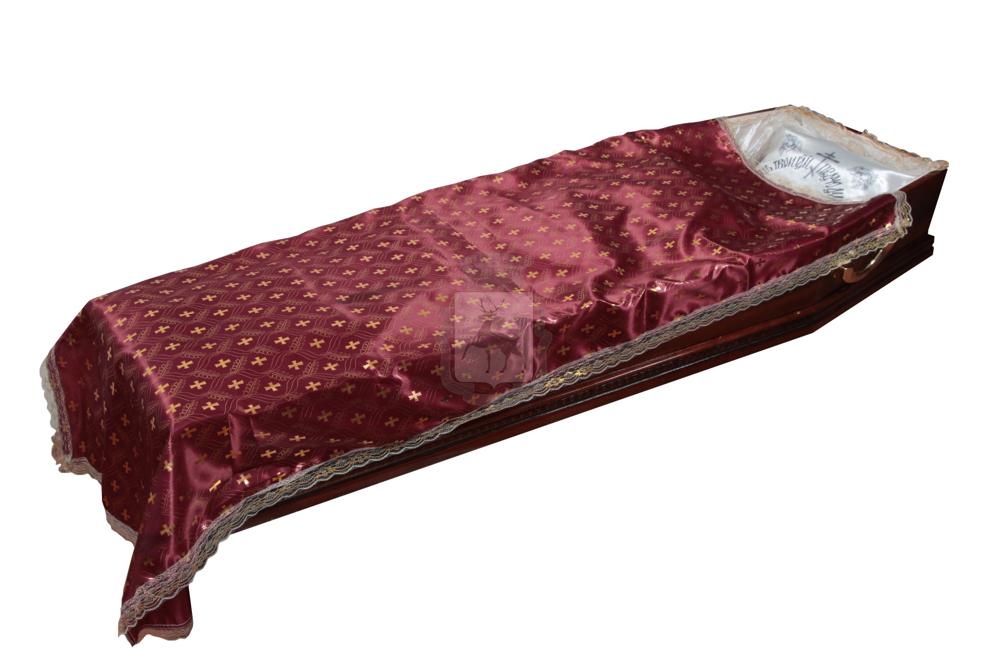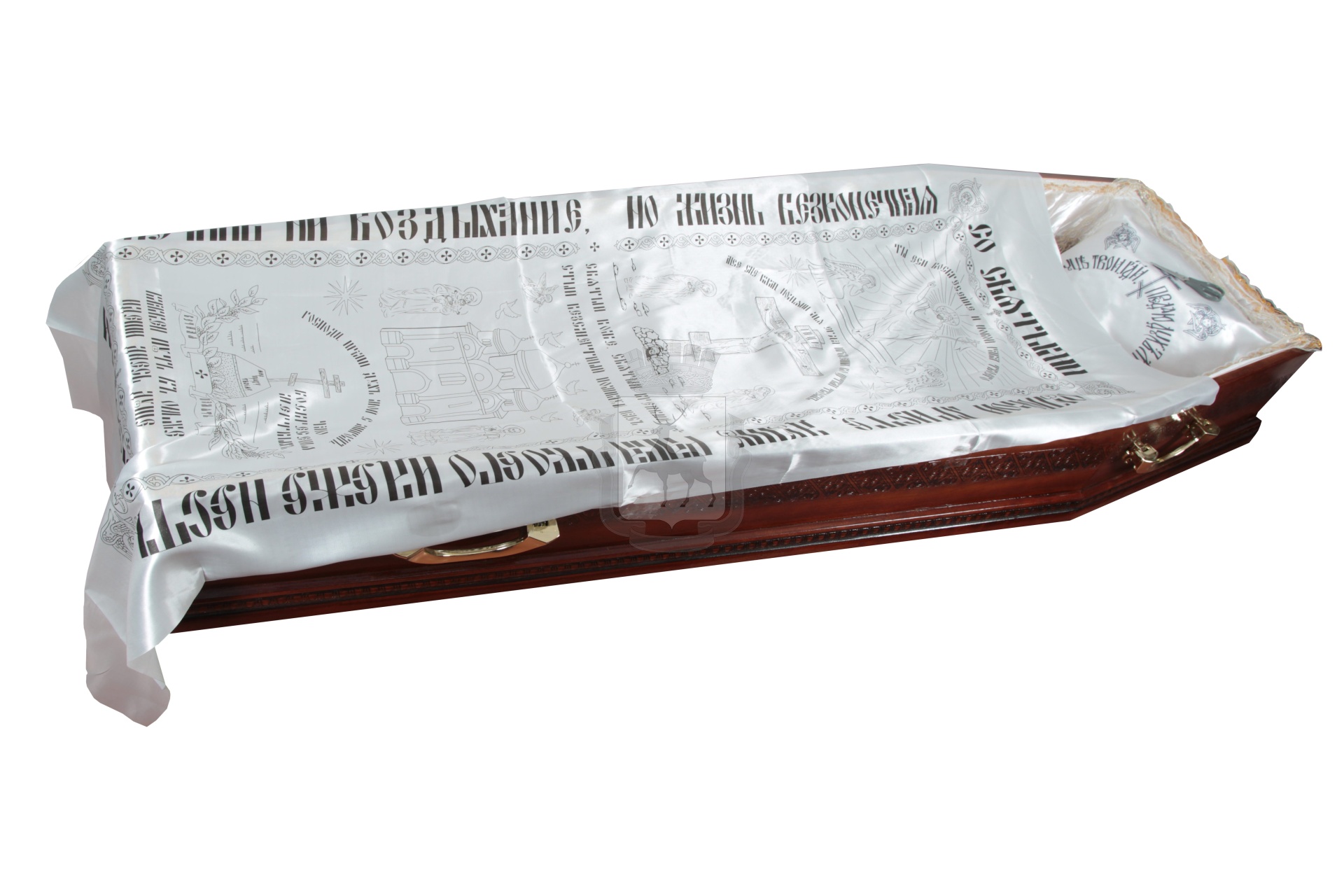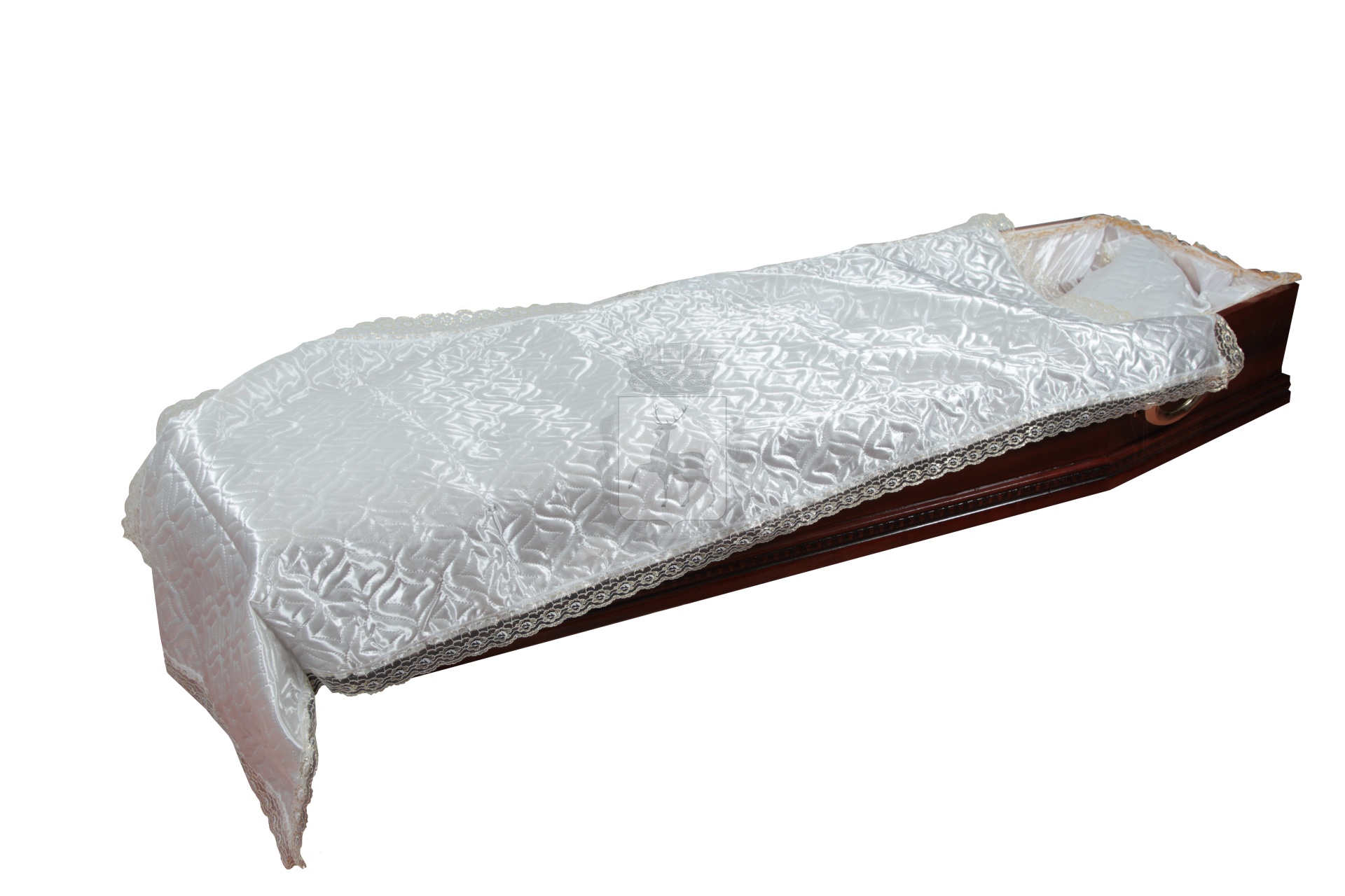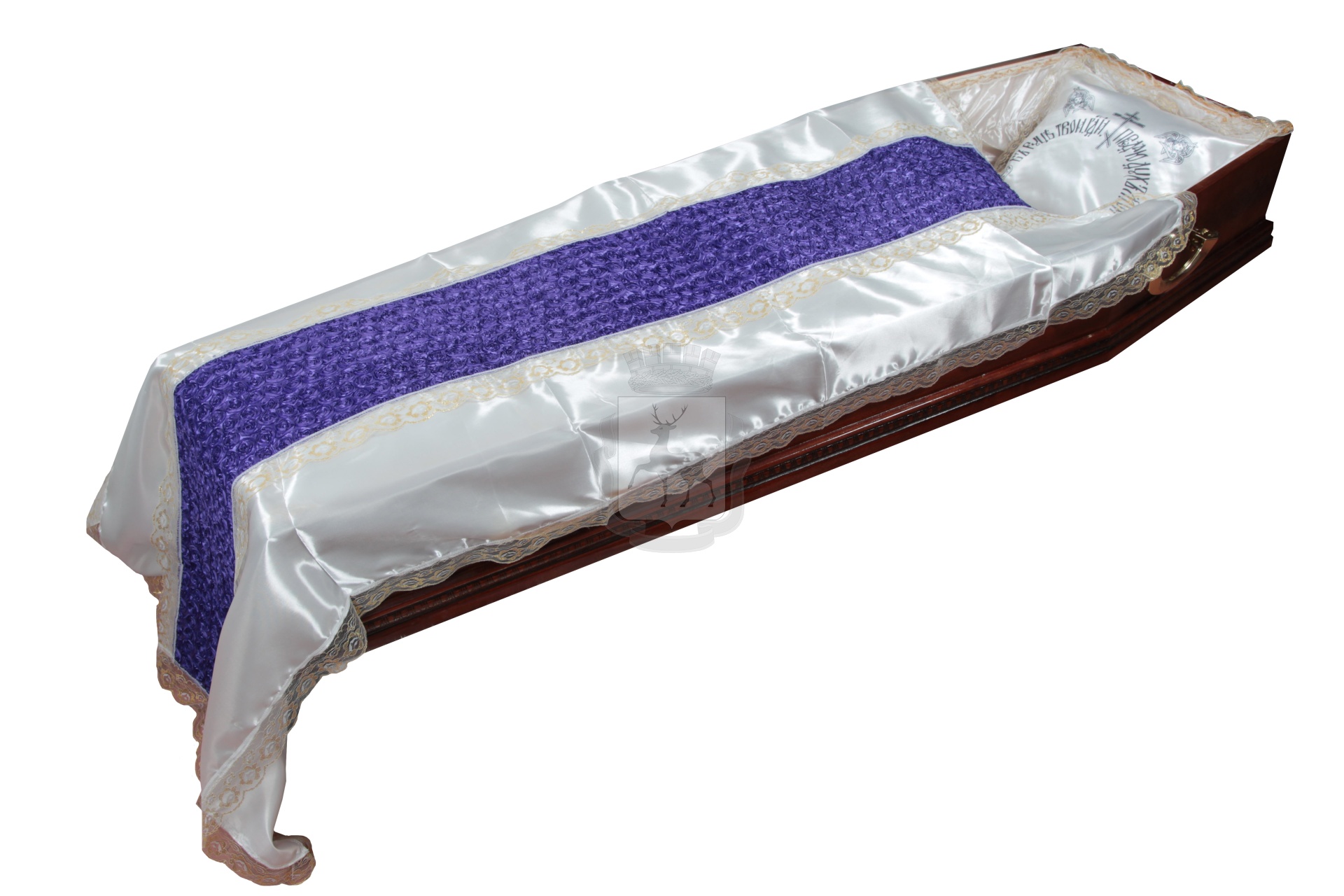 При организации публичного прощания часто приобретают также постель — натяжную простыню на гроб с резинкой по краю или с оформлением в гофре. Для пошива таких простыней используются ткани как шёлк, атлас или жаккард.